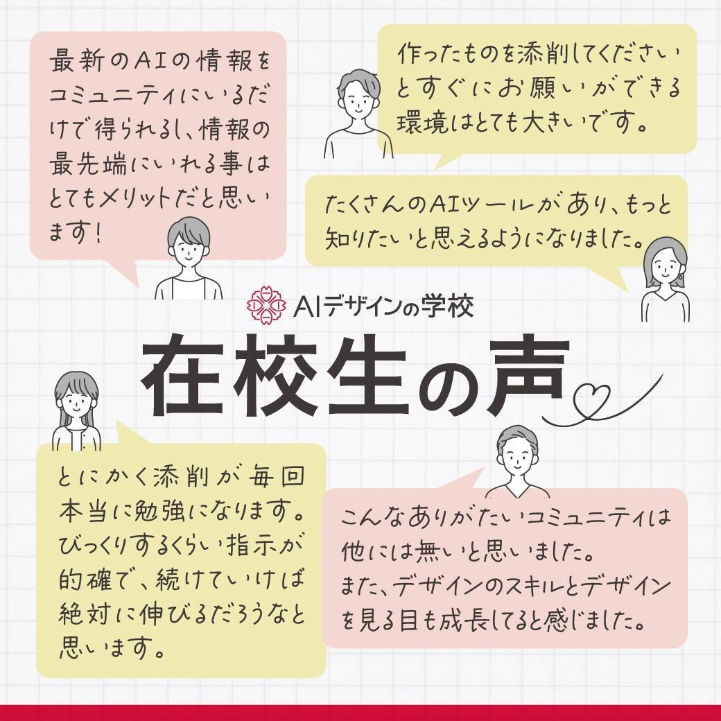 コチラのオープンチャットにまず参加してから「AIデザインの学校」に参加すると、デザイン歴20年を超える講師たちがあなたのデザインを添削してくれますよ!