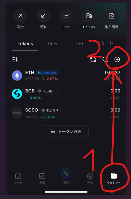 →ウォレットを開いたら、右下のウォレットマークをタップ